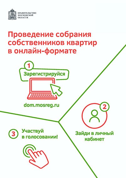 Электронный формат проведения общих собраний собственников МКД стал доступным всем жителям Московской области, благодаря внедрению портала ЕИАС ЖКХ Московская область (https://dom.mosreg.ru/), который на сегодня единственный в Подмосковье предоставляет новейшие электронные сервисы в сфере ЖКХ, в т.ч., управление многоквартирными домами, проведение онлайн-голосований, организация общих собраний собственников помещений и опросов в электронном виде.